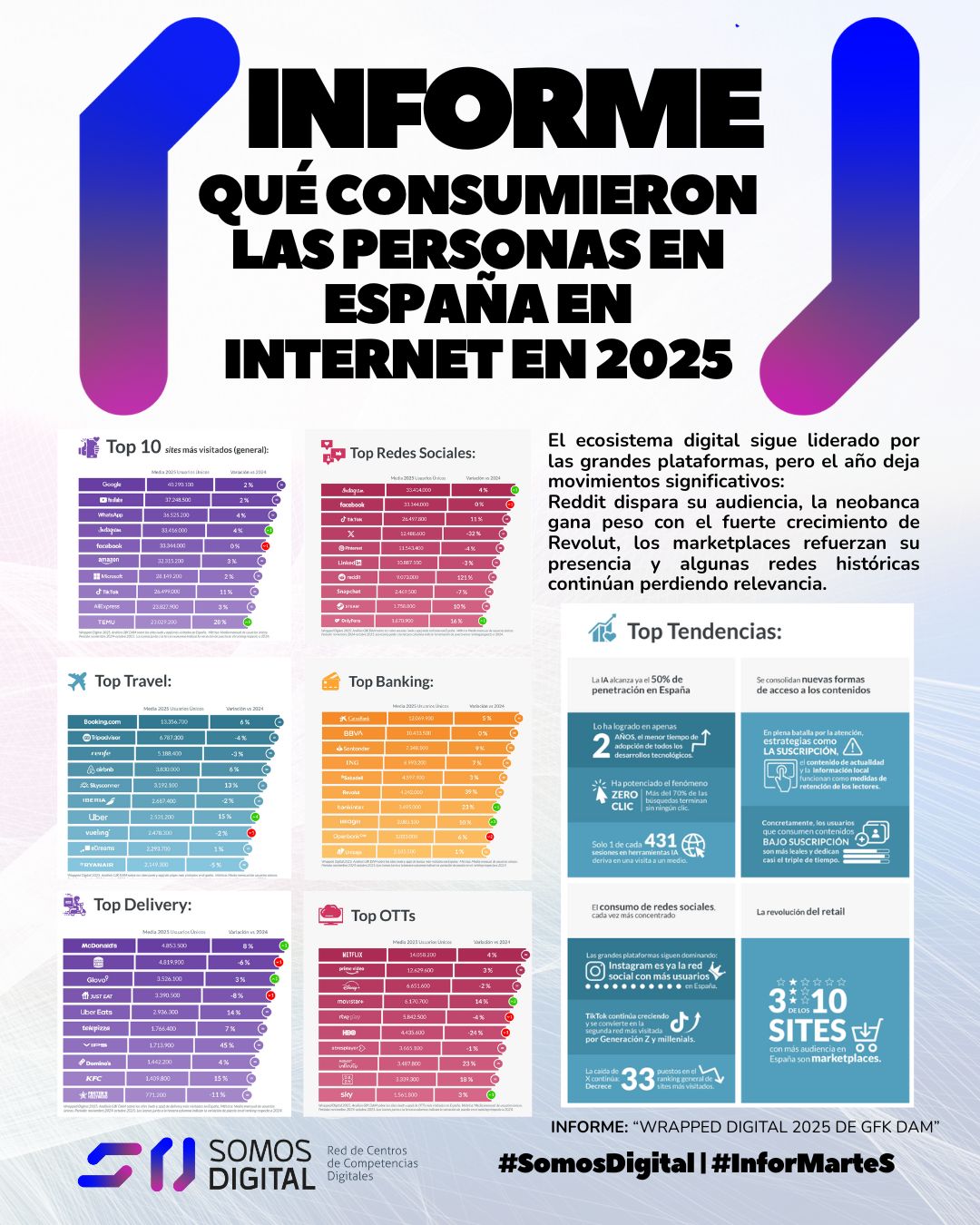 Los datos del informe Wrapped Digital GfK DAM 2025 de GfK DAM ofrecen una radiografía clara de cómo evolucionan los hábitos digitales en España y ayudan a entender hacia dónde se desplaza la atención, el consumo y la relación de la ciudadanía con los servicios digitales.