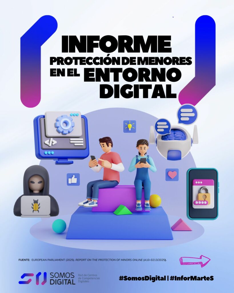 El Parlamento Europeo ha aprobado un informe clave sobre la protección de niños, niñas y adolescentes en el entorno digital. El texto alerta de los riesgos asociados al diseño adictivo de plataformas, al uso intensivo de redes sociales y videojuegos, y a la creciente presencia de sistemas de inteligencia artificial en la vida cotidiana de la infancia y la adolescencia.