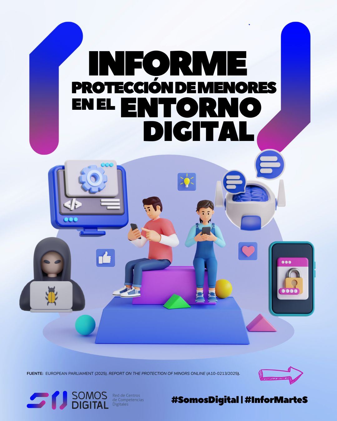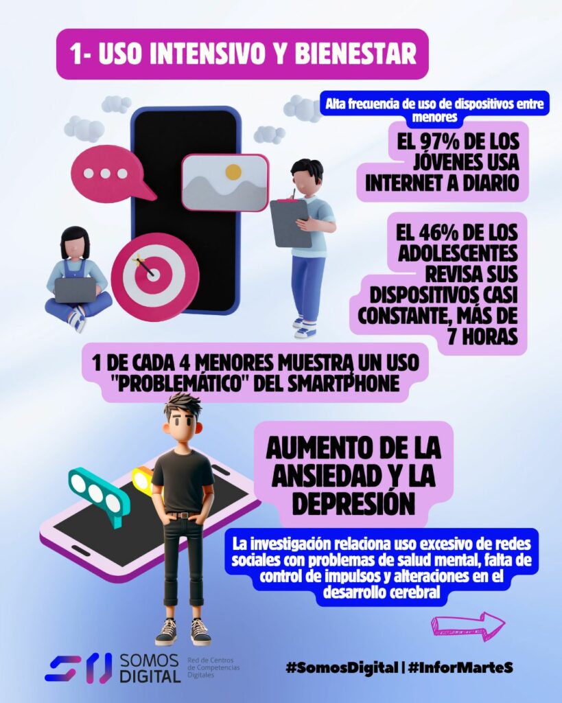 Informe del alumnado UNICEF, este informe ofrece una mirada directa a cómo viven la tecnología en su día a día: uso temprano del móvil, presencia intensiva en redes sociales, convivencia escolar, salud emocional, videojuegos, consumo de contenidos y exposición a riesgos digitales. Una fotografía amplia y actualizada que permite comprender mejor sus hábitos, preocupaciones y oportunidades de aprendizaje.